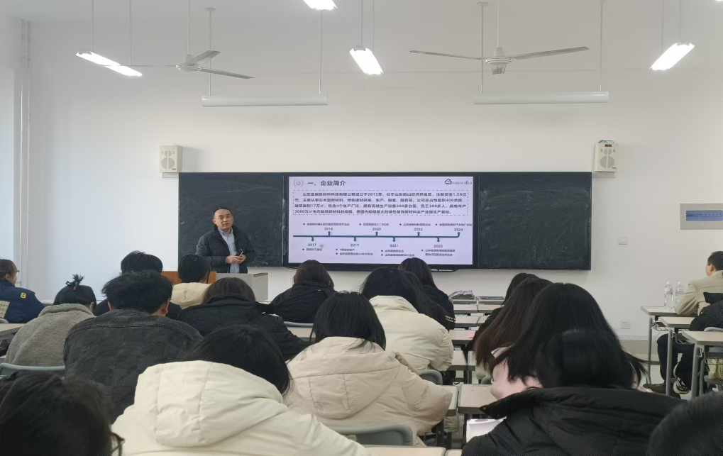 11月26日,山东宜居新材料科技有限公司负责人康经理通过精心制作的PPT,向同学们详细介绍了公司的发展历程、企业文化、组织架构以及在新材料领域所取得的显著成就。在岗位介绍环节,招聘负责人着重讲解了此次招聘涉及的多个岗位,涵盖了生产、销售、行政管理等多个领域,让同学们能够清晰地对照自身情况,衡量匹配度,寻找心仪的职位方向,深受经管学院学生青睐。