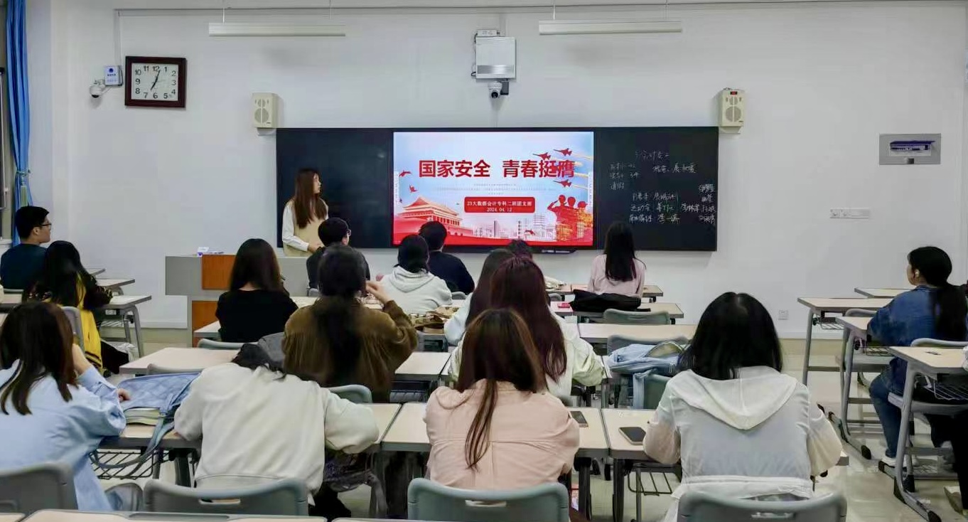 4月15日晚上,各班开展国家安全主题团课,观看学习视频并进行研讨交流,普及国家安全相关知识。同学们认真听讲,积极参与问答,并立志坚持关注国际形势和国家政策,紧跟国家步伐。