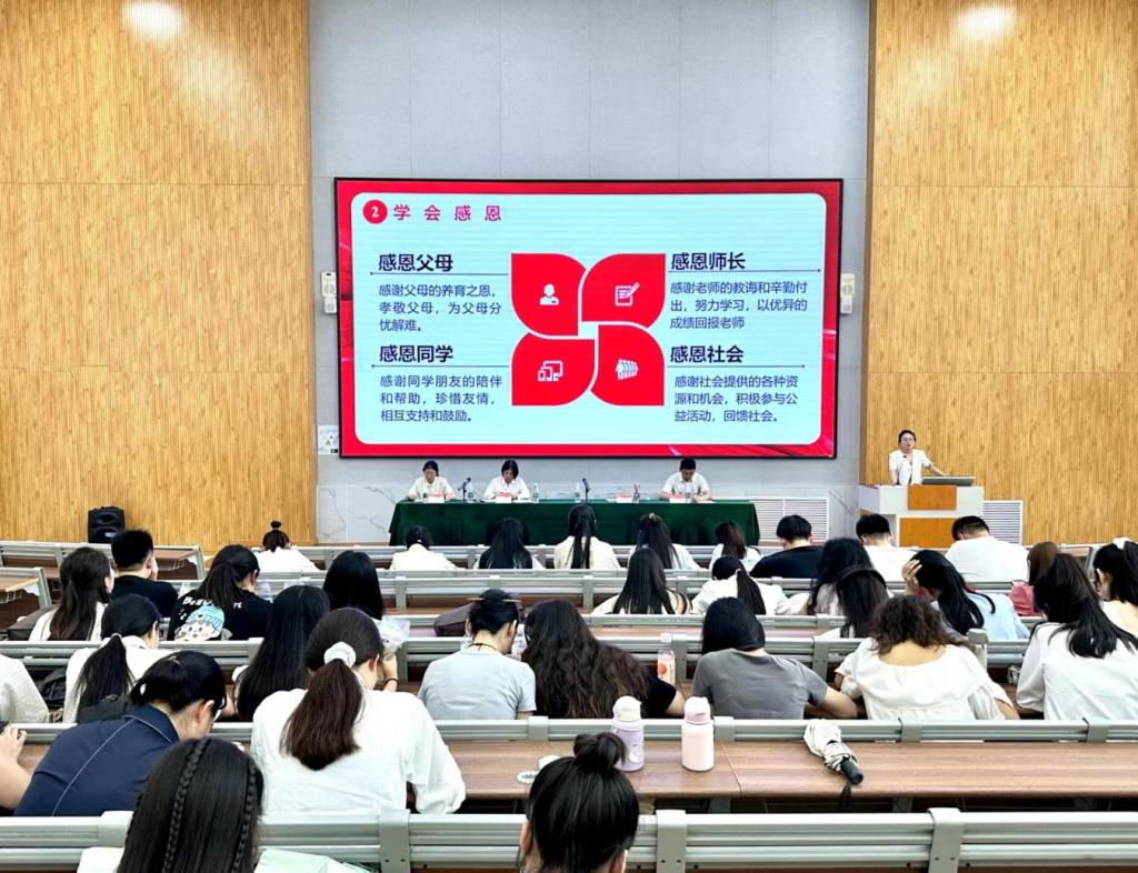 本次会议主要包括诚信和感恩教育两方面。李家家讲解到,国家助学政策是政府送给贫困给家庭经济困难大学生的温暖,体现了国家对家庭经济困难大学生的关爱。她叮嘱助学贷款毕业生,一定要秉持诚信精神、契约精神,将诚实守信的良好品德贯穿于今后的工作学习中,按时还款,防止违约带来的一系列不良后果。助学贷款不仅是经济上的支持,更是一份信任与期待,违约行为不仅损害个人信用,还会影响后续学子获得帮助的机会。李家家希望同学们在今后的工作学习生活中,要继续努力,怀着感恩的心,肩负起时代赋予的重任,投身于社会主义现代化建设事业中去,用自己的努力回报社会。感恩之心是推动个人成长与社会进步的强大动力,国家和社会的关爱为同学们创造了良好的成长条件。