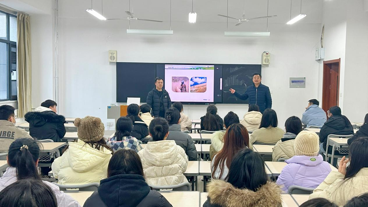 山东潍坊润丰化工股份有限公司经理郝明青以企业宣传短片为媒介,向学生们展示了企业的文化观、生态链,深入剖析了当前行业的趋势和特点,并详细介绍了企业文化和薪资待遇.会后,郝明青与有意向的同学开展了深入且具有针对性的沟通交流。