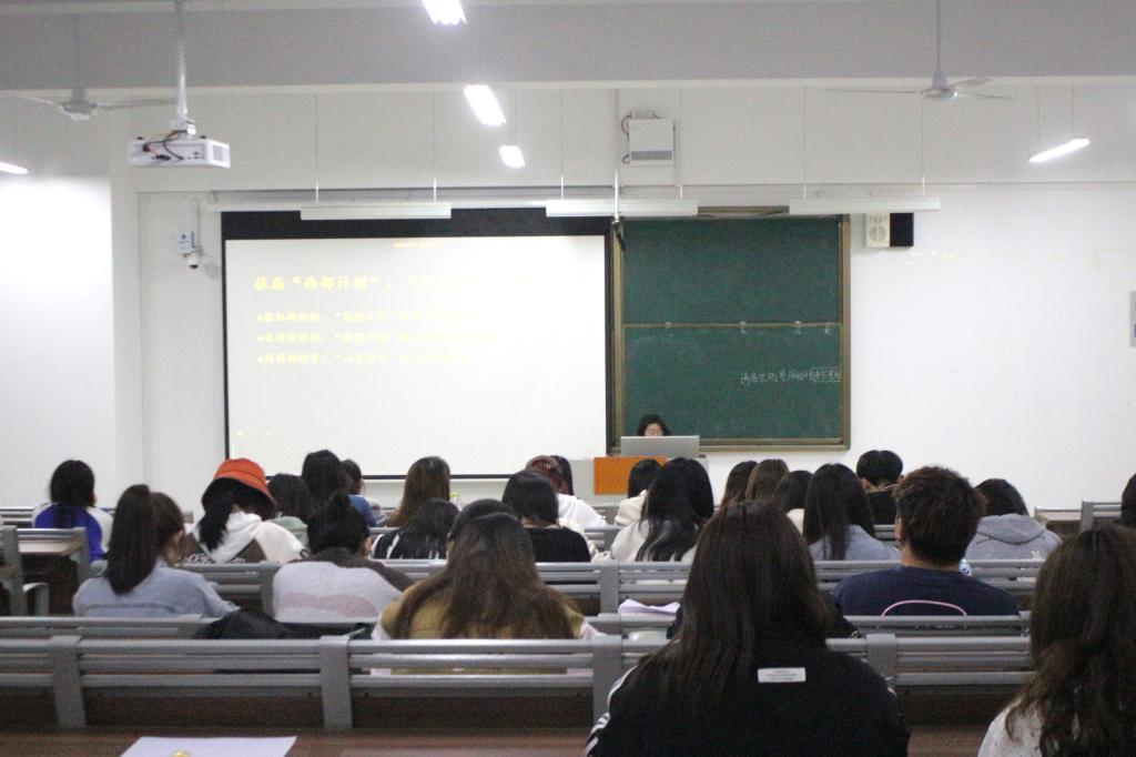 宣讲开始,首先我院参加西部计划的同学向大家分享了西部计划的具体工作方向、工作内容、待遇及心得体会,解答同学们的有关问题和疑惑,帮助同学们更好的了解有关方面的内容,推动活动的顺利召开。随后,张璇向大家介绍了“西部计划”和“山东计划”的主要内容,积极号召同学们能够踊跃参与本次活动。