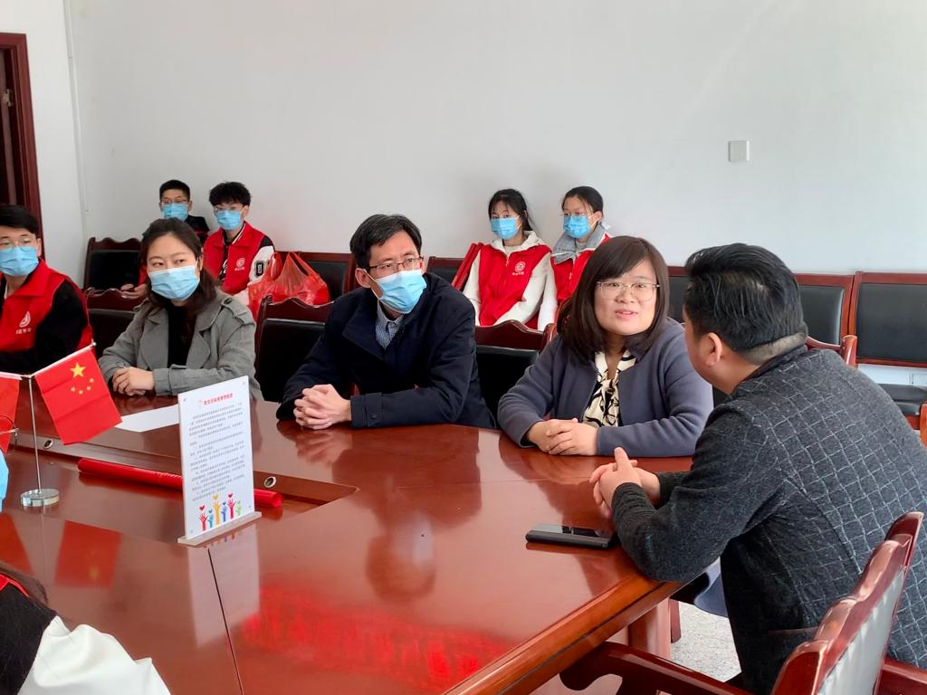 在党群服务中心,谢金萍与殷庄社区党支部书记就共同开展创建文明城市建设、高校教师开展社区宣讲、学生社区志愿服务队伍的建设以及开展其他党建团建相关活动等方面进行了详细的探讨。