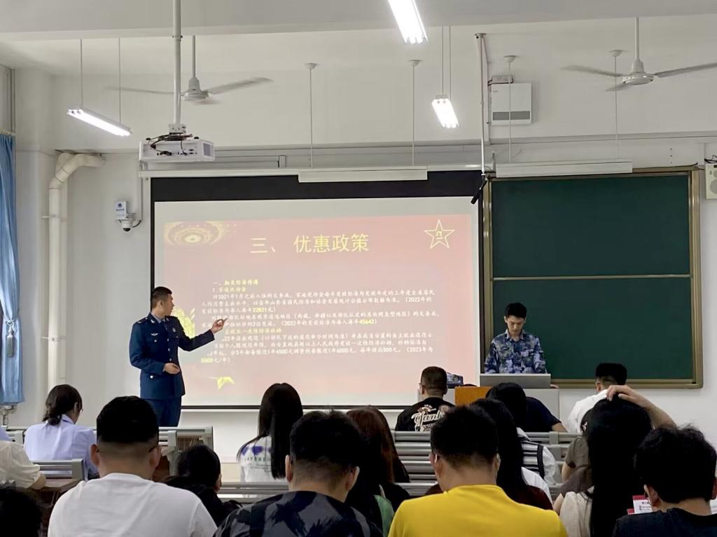 6月12日,何金泰主持国防教育班会,阐述国防重要性并解读入伍政策。退伍学生刘屹现身宣讲,帮助同学们进一步提高国防安全意识。