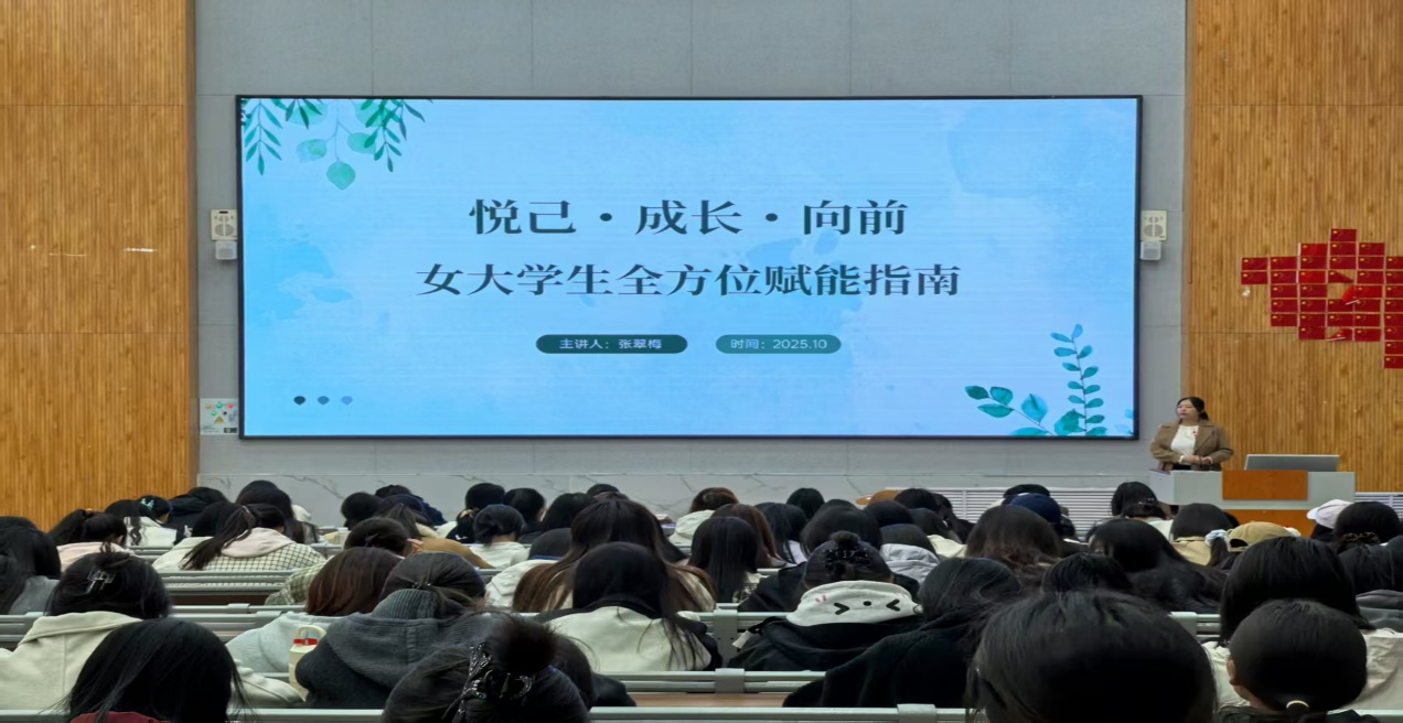 10月23日晚,为女大学生构建交流平台,帮助大家理性应对迷茫情绪,缓解成长过程中的孤独感,bevitor伟德国际1946在增信楼113教室举办以“悦己・成长・向前——女大生全方位赋能”为主题的专题讲座。本次讲座由张翠梅老师担任主讲,2025级全体女生参加。
