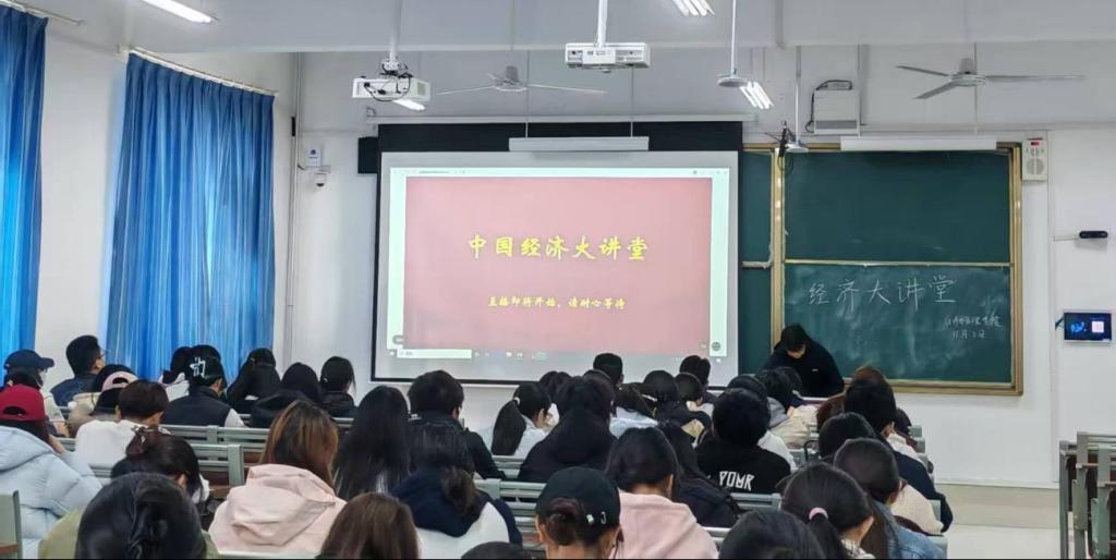 为深入学习贯彻党的二十大精神,进一步解读中国经济政策与实践,提升经济类人才自主培养质量,11月2日上午,bevitor伟德国际1946在崇德楼405教室组织观看了“中国经济大讲堂”第四讲线上直播,经济统计专业学生集中参加了此次学习活动。
