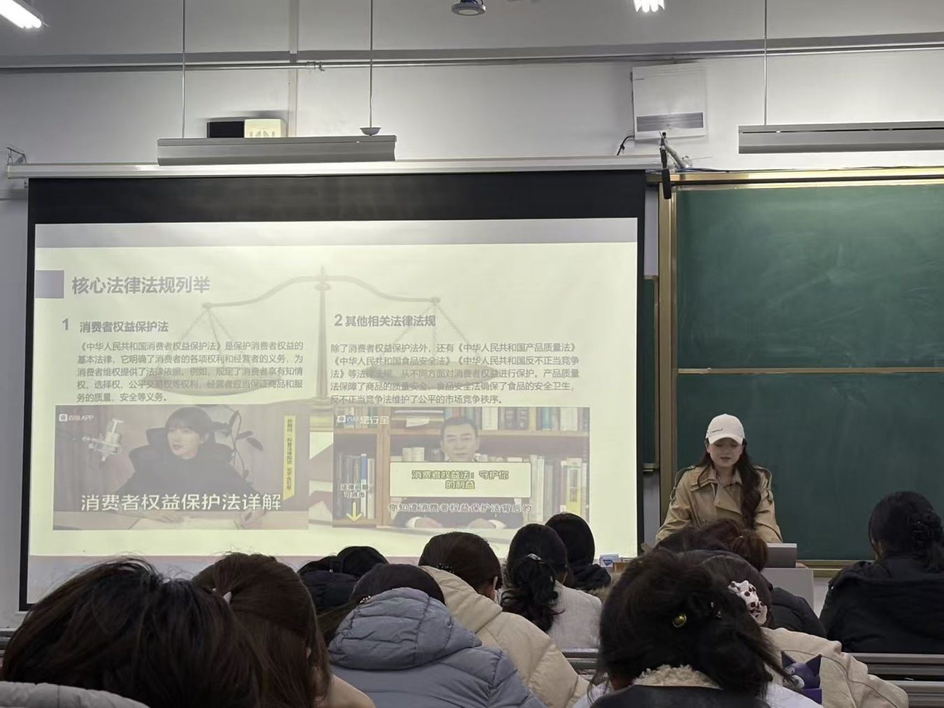讲座中,李媛师姐结合大学生日常消费实际,围绕消费维权概述、相关法律法规、多元维权途径、诚信经营原则、反诈骗技巧及理性消费建议等内容展开系统讲解。针对当前网络消费中频繁出现的新型风险与挑战,她结合学生群体特点,提出了切实可行的应对策略,引导同学们树立“事前防范、事中理性、事后依法”的科学消费观念。