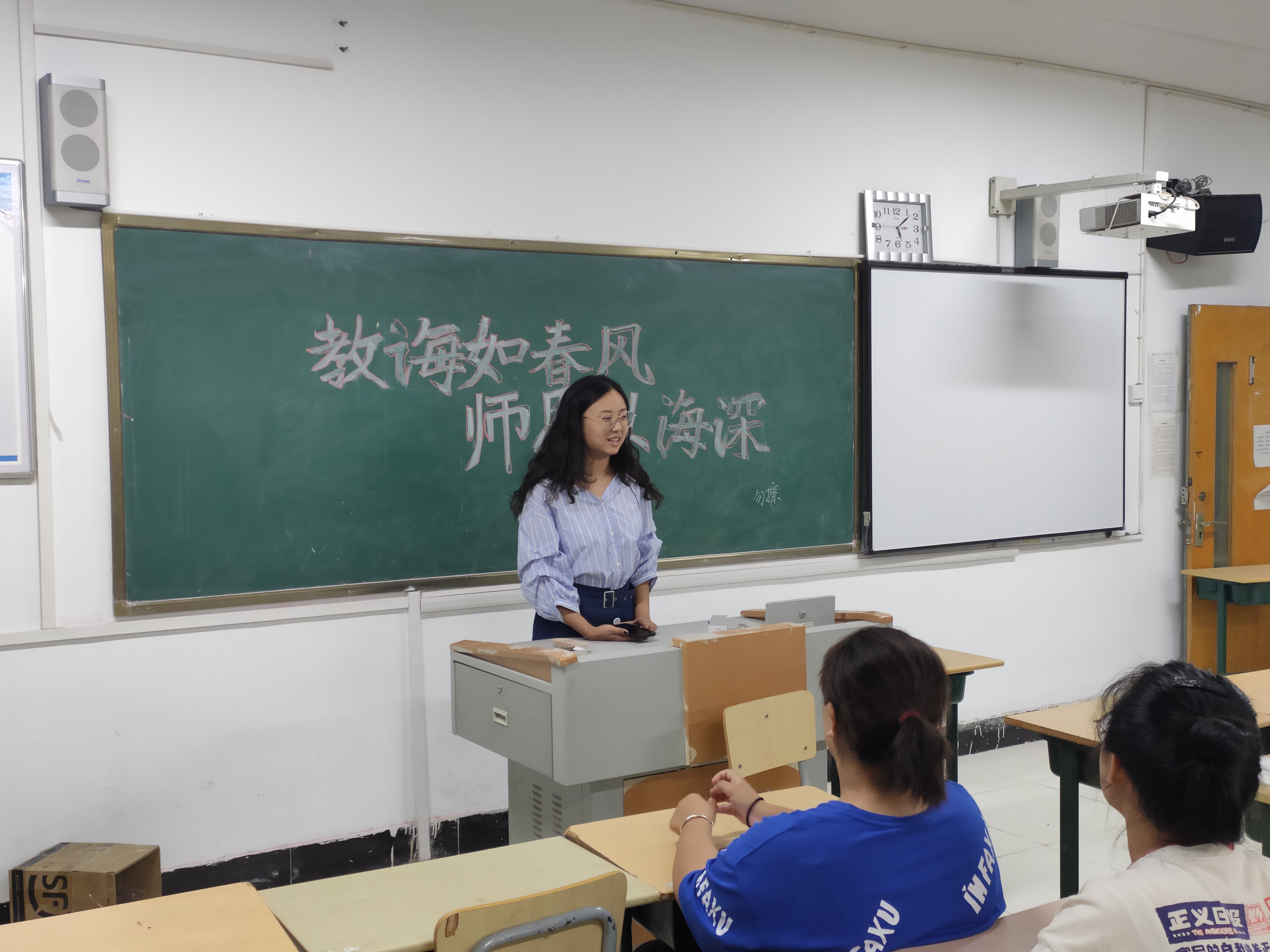 为感谢师恩、铭记师恩,各班各展所长,通过黑板留驻感恩词,短息送祝福,朗诵诗歌,制作手工贺卡,两分钟惊喜等形式表达对老师的真诚祝福;通过观看优秀教师视频,传播师者的高尚情操,感怀日常生活中老师们的点滴之情。