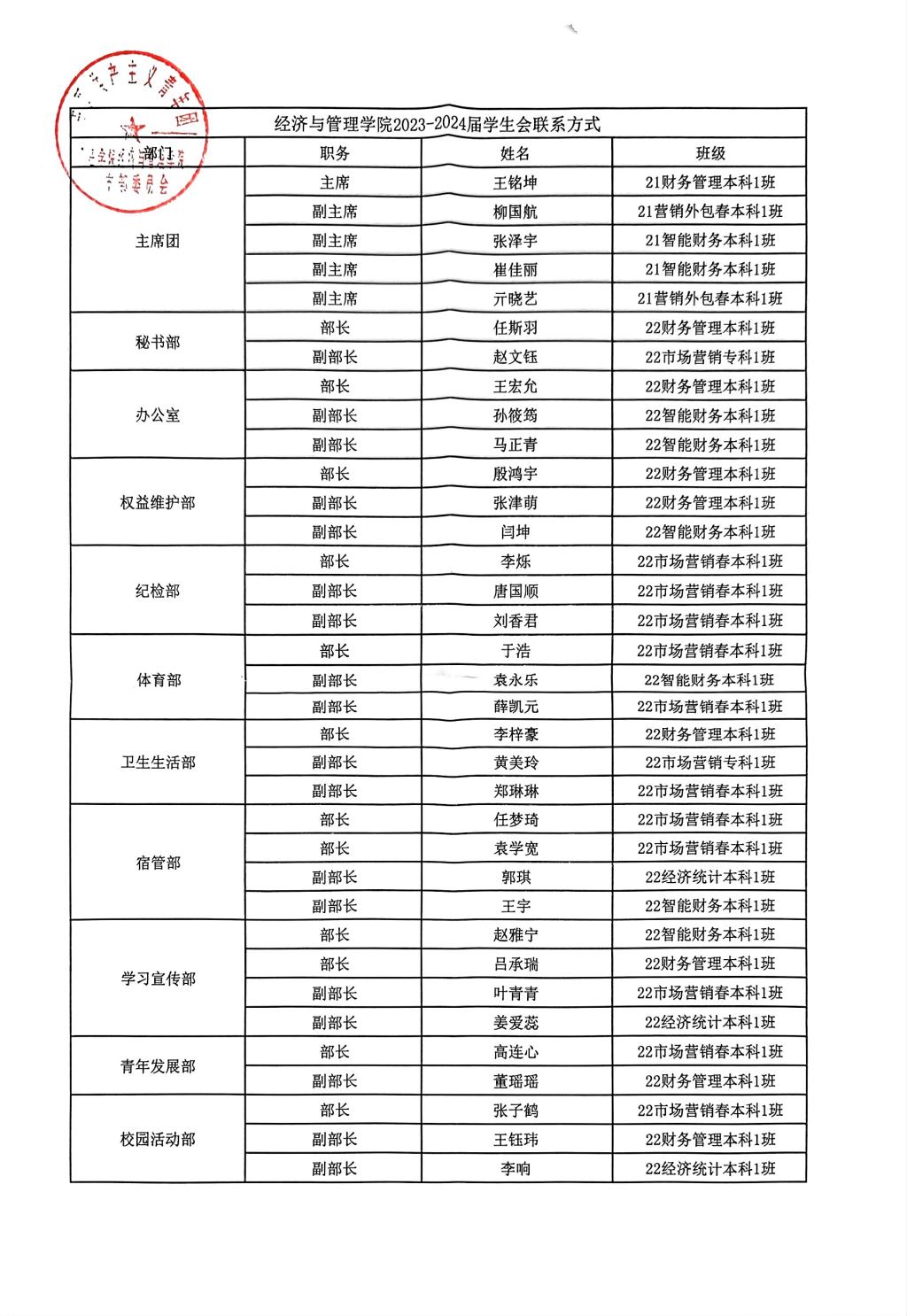 2023-2024届bevitor伟德国际1946学生会成员