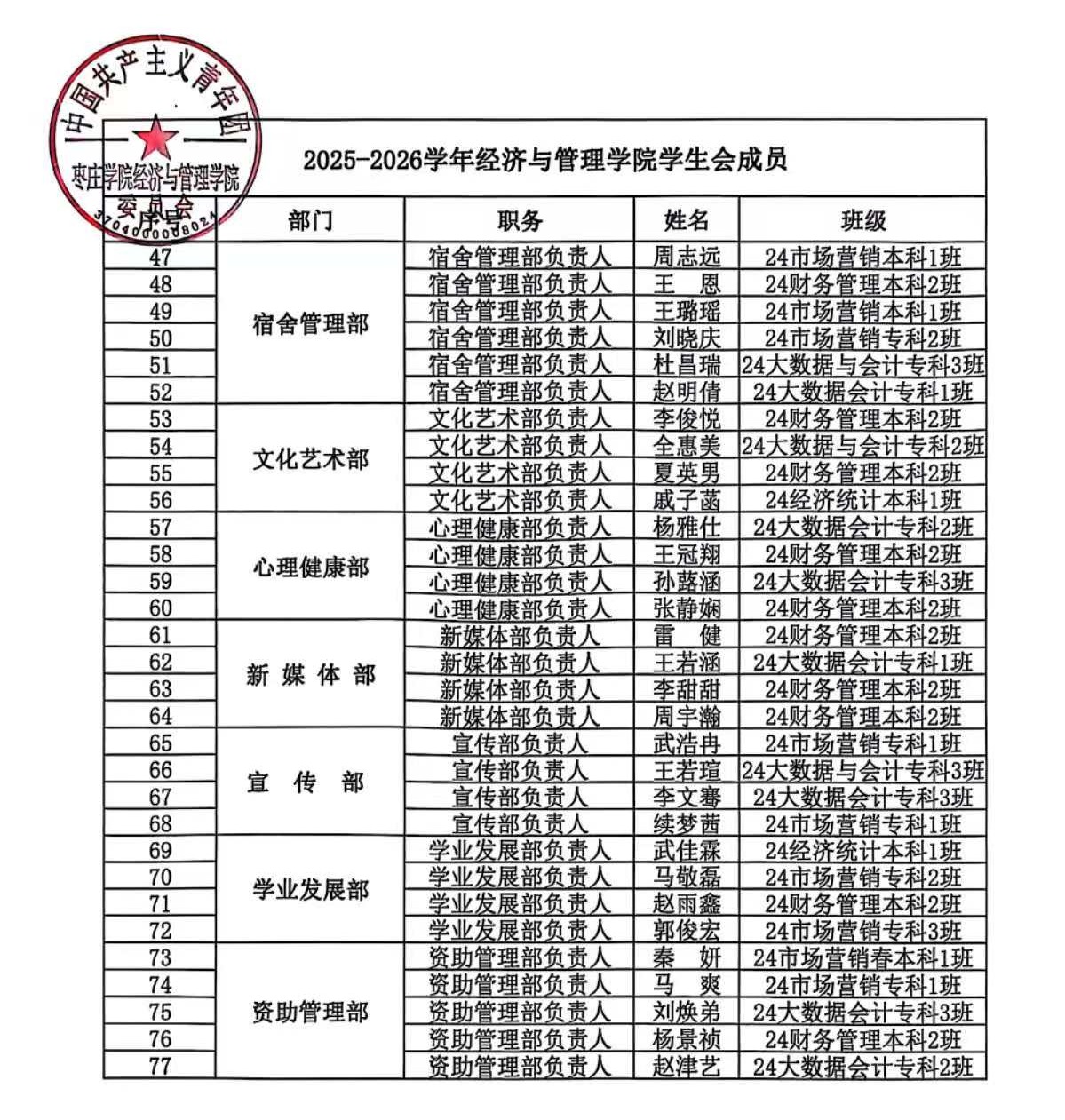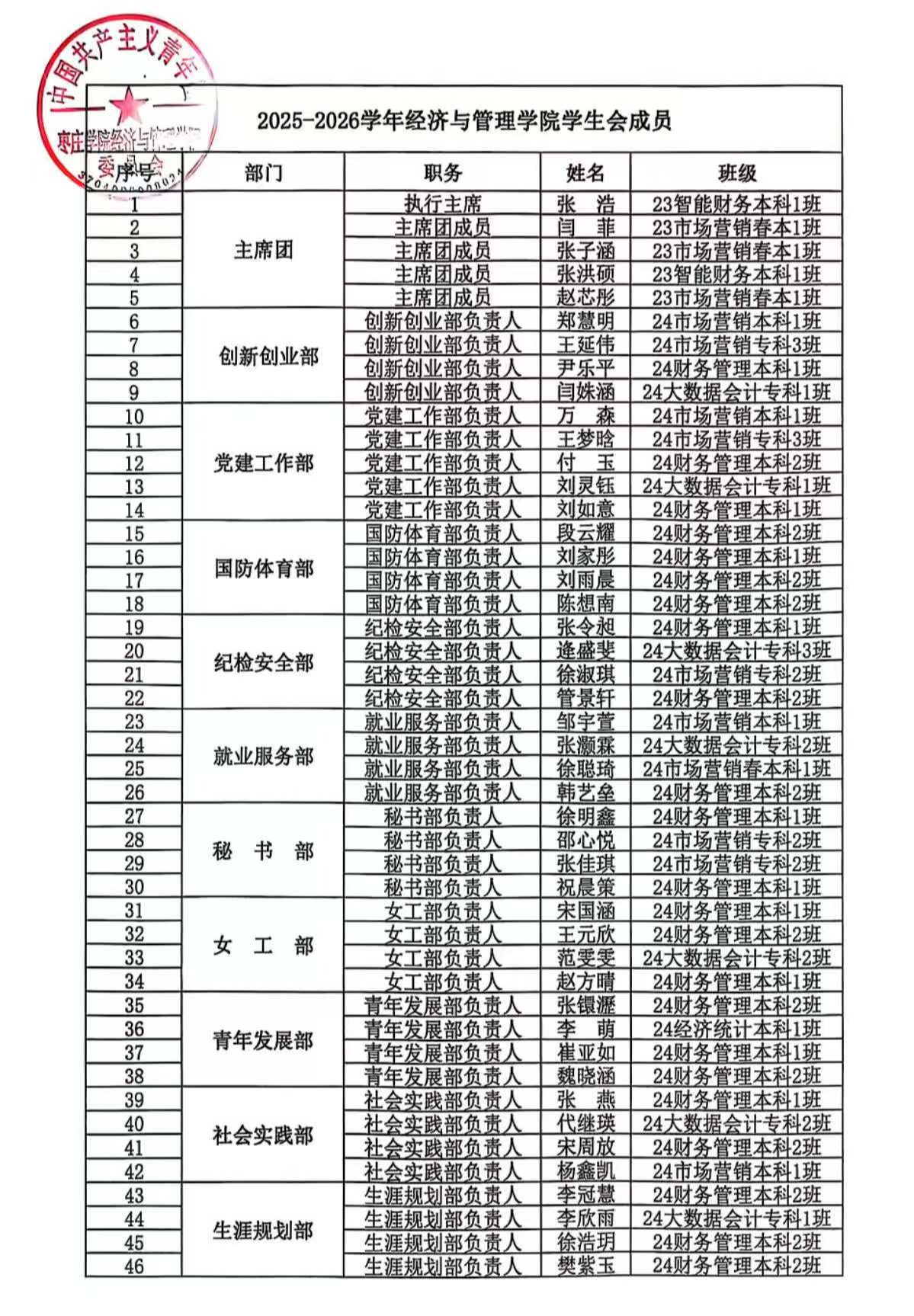 2025-2026学年bevitor伟德国际1946学生会、自律会成员名单
