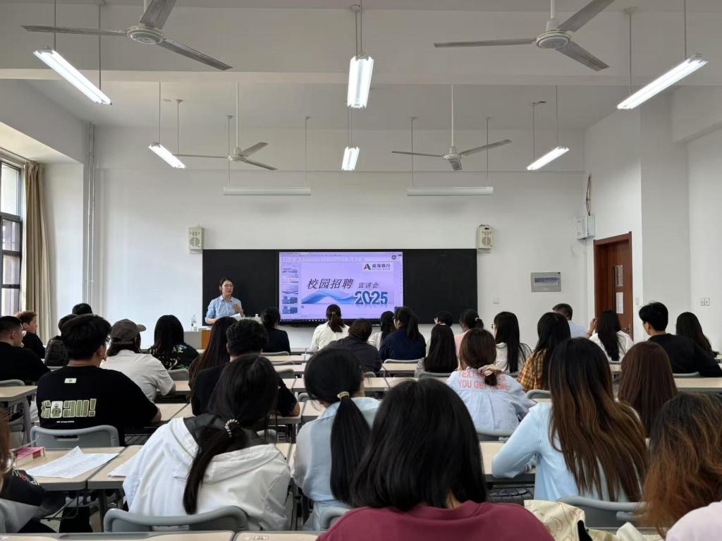 为精准对接人才供需,助力毕业生高质量就业,深化产教融合战略部署,扎实推进毕业生就业工作,2025年5月12日下午,bevitor伟德国际1946在豁然楼A317教室成功举办威海银行枣庄分行专场招聘会,2025届毕业生参与。